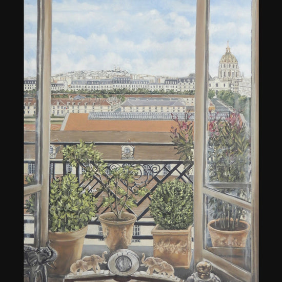 La tecnica mista di olio e acrilico su tela conferisce profondità, texture e vivacità ai colori, catturando la magia della capitale francese da un punto di vista intimo e personale.